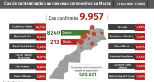 Trois mille sept cent quatre-vingt-dix (3.790) nouveaux cas d’infection au coronavirus et 3.350 guérisons ont été enregistrés au Maroc dans les dernières 24 heures, a annoncé samedi le ministère de la santé. Le nouveau bilan porte à 219.084 le nombre total des contaminations depuis le premier cas signalé le 2 …